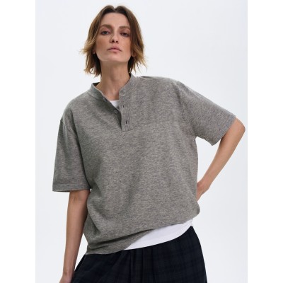High end clean fit short sleeved T-shirt men's casual retro Henry collar knitted top ins