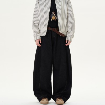 Retro denim black wide leg curved jeans, men's and women's American versatile straight leg loose casual pants