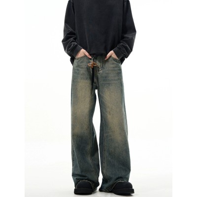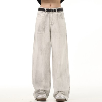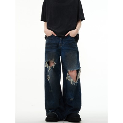 American retro distressed distressed design floor length jeans, niche high street loose and versatile wide leg pants